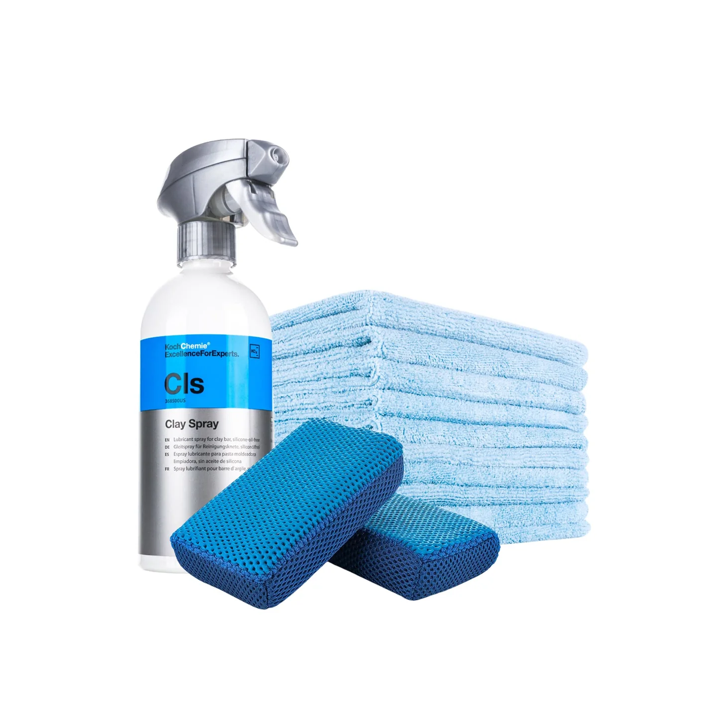 The Koch-Chemie Clay Kit provides everything you need to safely remove bonded contaminants from paint, glass, metal, and plastics — leaving surfaces smooth, clean, and ready for polishing or protection. This professionally balanced kit combines Koch-Chemie’s premium Clay Spray lubricant with The Rag Company’s Ultra Clay Scrubber and Edgeless 300 microfiber towel for a safe, effective, and efficient decontamination process.